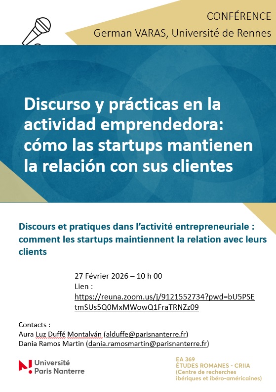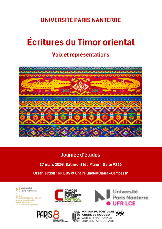- LA LANGUE PORTUGAISE EN CULTURES avec Ana Paula Ferreira17 février 2026Cycle de séminaires organisé par le Centre de recherches interdisciplinaires sur le monde lusophone - CRILUS et la Chaire Lindley Cintra de Camões IP, de l’Université Paris, en partenariat le Lectorat de portugais / Université Paris 8. Lire la suite