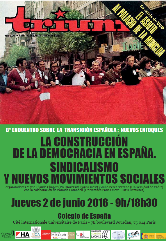 - 8ème rencontre "Transition Espagnole, nouvelles perspectives"2 juin 2016LA CONSTRUCCIÓN DE LA DEMOCRACIAEN ESPAÑA. SINDICALISMO Y NUEVOS MOVIMIENTOS SOCIALES Lire la suite