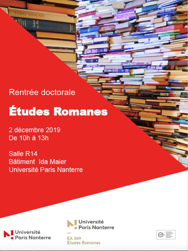 - Rentrée doctorale 2019-2020 ETUDES ROMANES2 décembre 2019Rentrée doctorale de l'Unité de Recherche Études Romanes Lire la suite