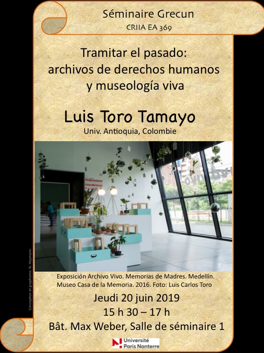 - Séminaire du GRECUN " Tramitar el pasado : archivos de derechos humanos y museología viva "20 juin 2019Le groupe Grecun (État, Culture, Nation dans le monde ibéro-américain), rattaché au CRIIA (Centre de recherches ibériques et ibéro-américaines) - EA Etudes Romanes organise un nouveau séminaire sur le thème : " Tramitar el pasado : archivos de derechos humanos y museología viva " Lire la suite