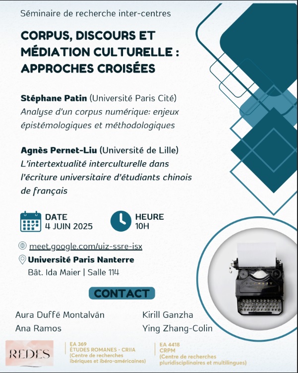 Séminaire de recherche CORPUS, DISCOURS ET MÉDIATION CULTURELLE : APPROCHES CROISÉES